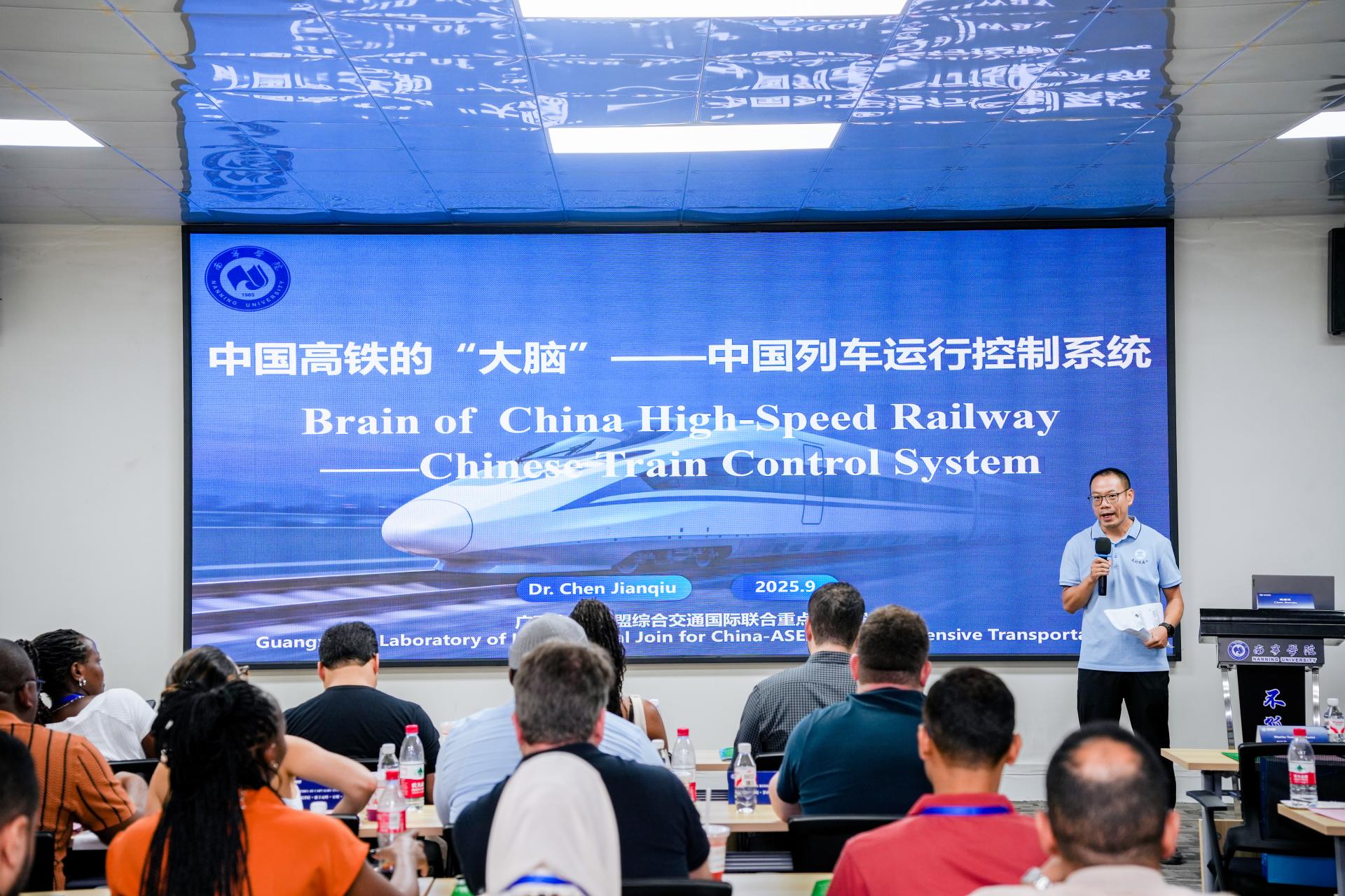 随后,由南宁学院交通运输学院副院长庞彦知教授以《城市轨道交通前沿技术》为题,解析城市轨道交通的创新发展方向;重点实验室副主任陈建球教授则聚焦《中国高铁的“大脑”——中国列车运行控制系统》,深入介绍中国高铁技术的核心突破,为学员带来前沿且务实的专业分享。