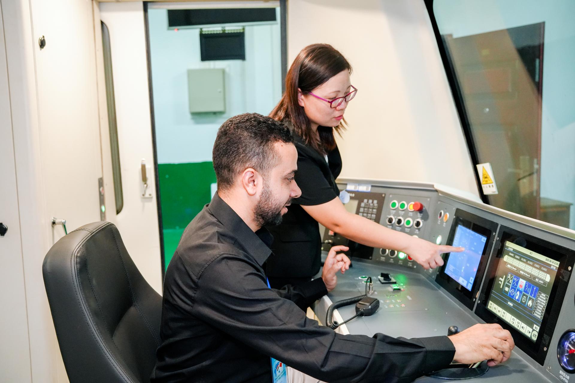 下午,前往重点实验室进行实地参观。由商洁老师、陈佳良老师带队,体验列车模拟驾驶,亲身体验轨道交通技术的先进应用,体验做地铁司机的感觉;在行车调度沙盘旁,学员们详细了解了列车运行控制、调度管理等实操环节。通过近距离的观察与互动,学员们对中国轨道交通技术的实践应用有了更为直观和深刻的认识。
