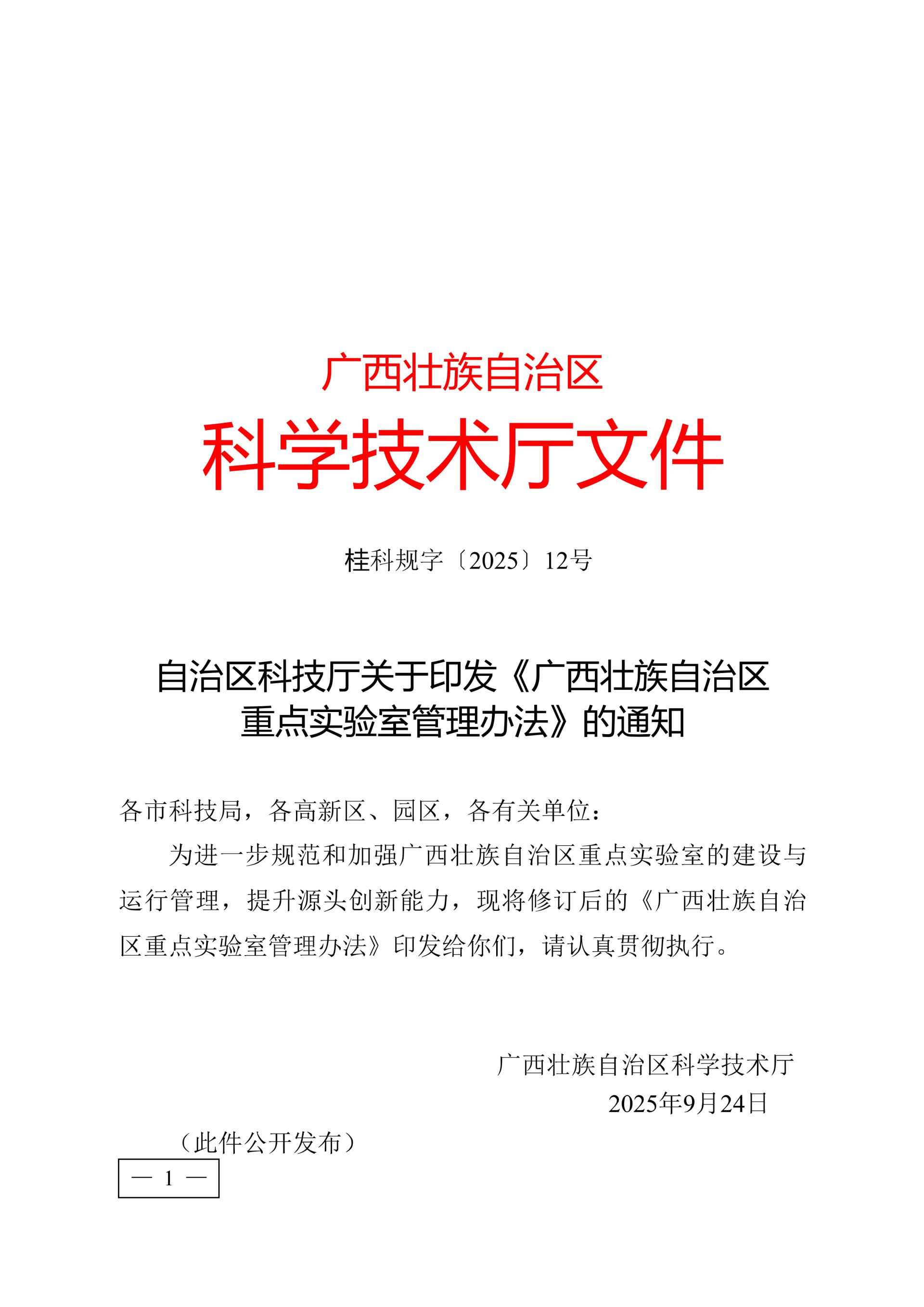 《广西壮族自治区重点实验室管理办法》(来源:广西壮族自治区科学技术厅网站)